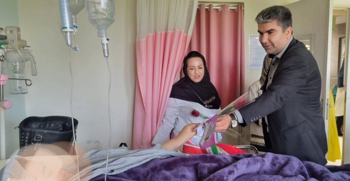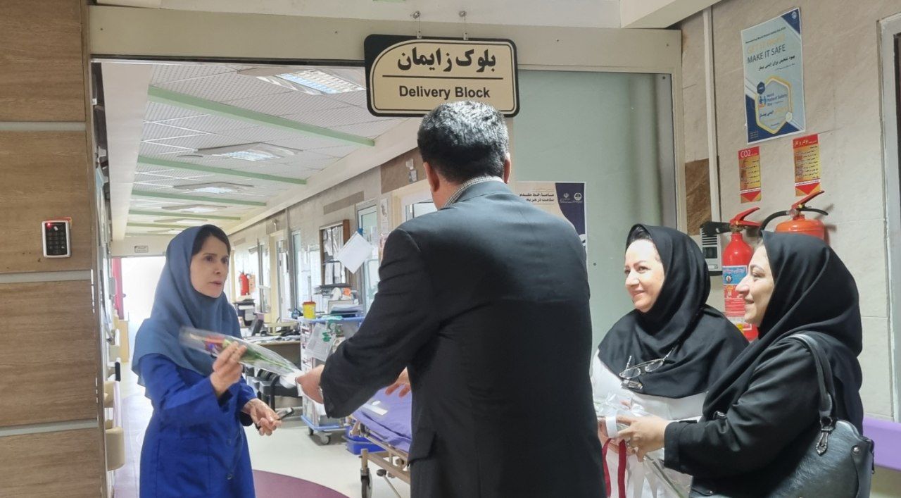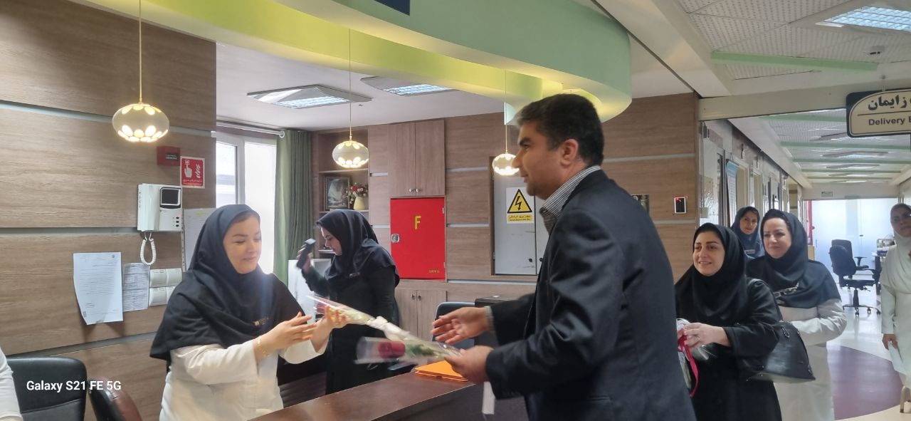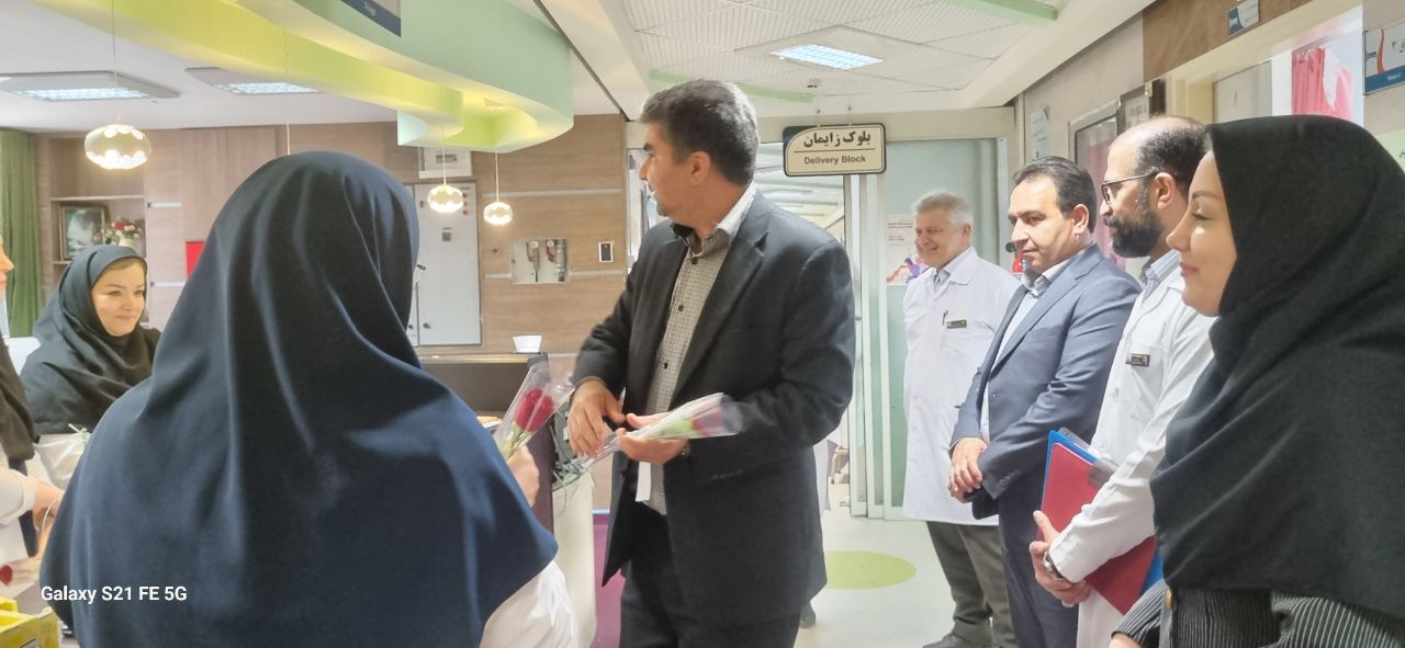 در ادامه دکتر علاسوند با حضور در بلوک زایمان از  مادران  زایمان کرده و پرسنل این بخش با اهدای  گل تقدیر  کرد.