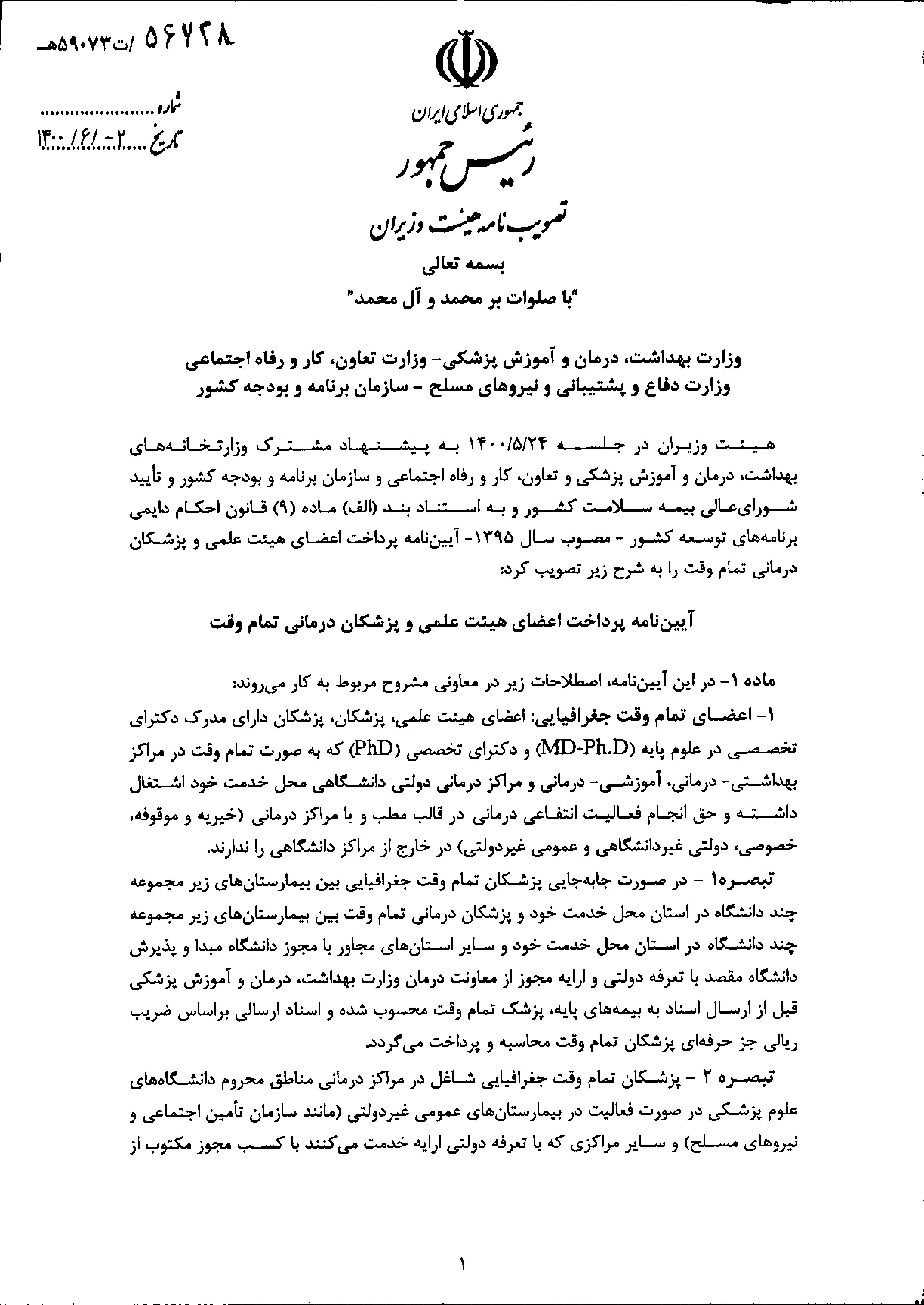 • وزارت بهداشت درمان وآموزش پزشکی