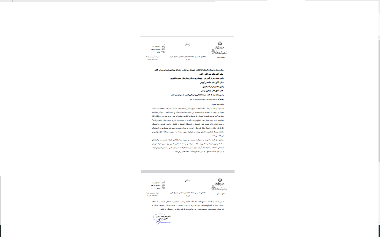 ابلاغ تعرفه های خدمات تشخیصی ودرمانی بخش دولتی